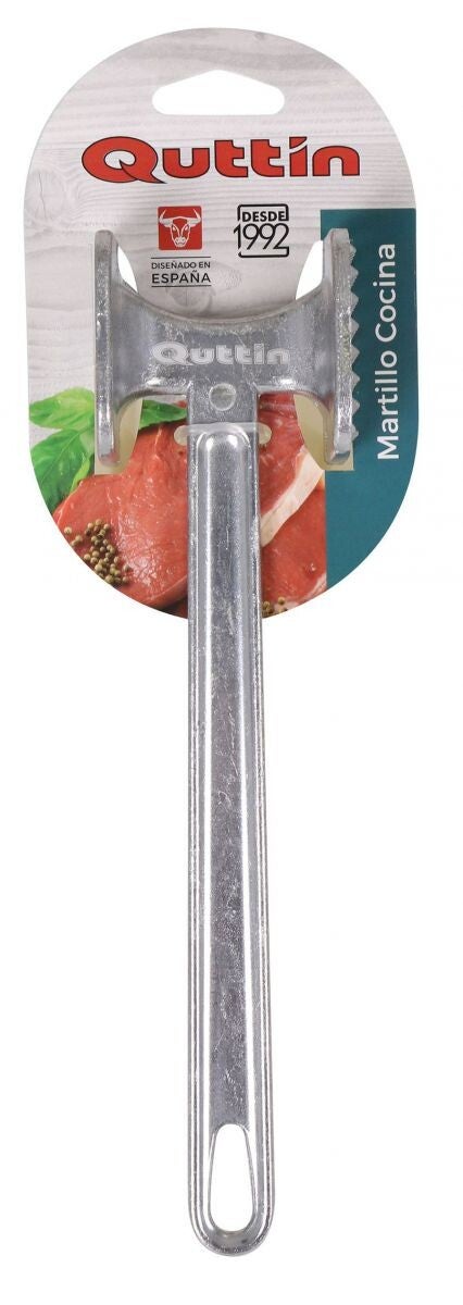 De Quttin vleeshamer is een handig keukengereedschap gemaakt van duurzaam aluminium. Met afmetingen van 22,5 x 5,5 cm is deze vleeshamer ideaal voor het malen en verzachten van verschillende soorten vlees. De hamer heeft aan de ene kant een platte kant om vlees plat te slaan en aan de andere kant kleine tanden om vlees te verzachten.