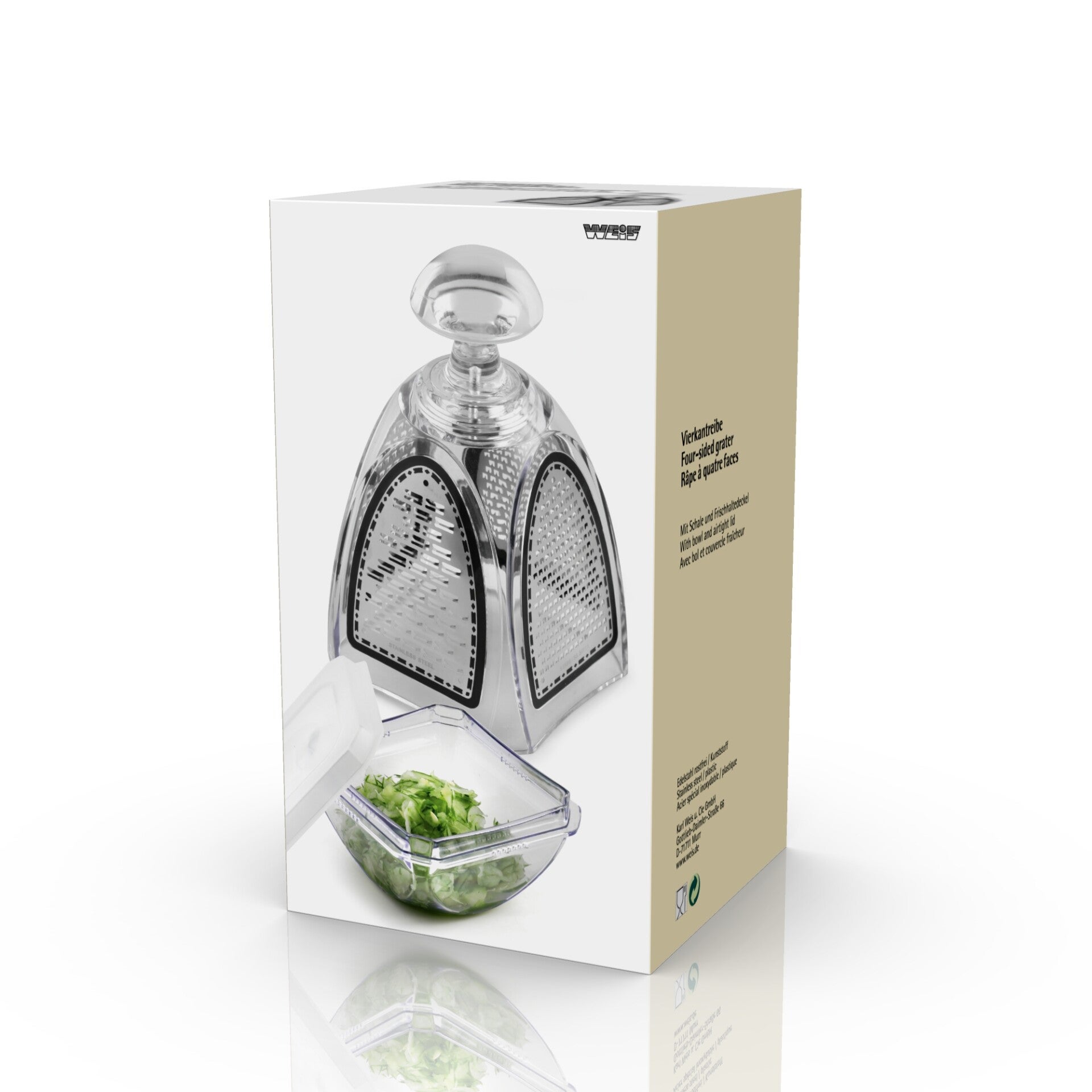 Bovendien wordt de Karl Weis vierkante rasp geleverd met een handige opvangbak en vershouddeksel. Dit innovatieve ontwerp maakt het raspen een stuk netter en vermindert de rommel in jouw keuken. Geen losse ingrediënten meer die de hele werkplek vervuilen! Dankzij de opvangbak kun je gemakkelijk een portie voorbereiden en vers houden.