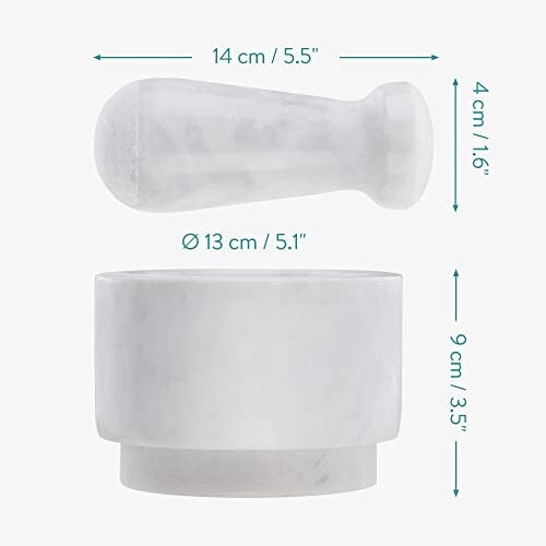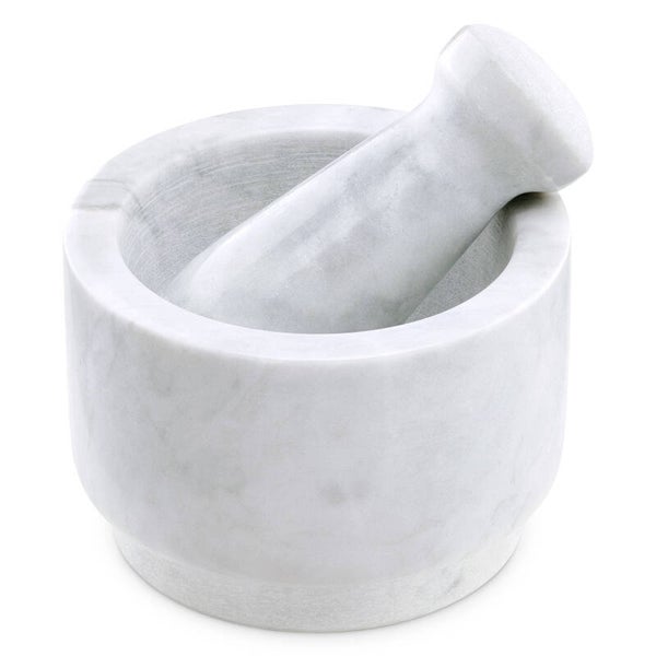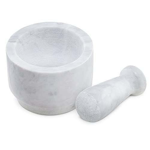Navaris vijzel en stamperset - Wit/grijs marmeren stamper en vijzelkom voor het malen van specerijen, knoflook, noten, kruiden, pesto - 13 cm diameter