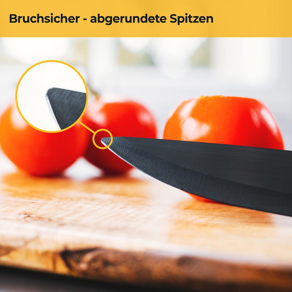 De scherpe, lichtgewicht en roestbestendige keramische messen zorgen voor precisie en gemak bij het snijden. Ze zijn ontworpen om moeiteloos door ingrediënten te glijden, waardoor je sneller en efficiënter kunt koken.