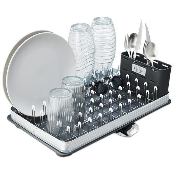 Met het SILBERTHAL Afdruiprek met bestekmand, lekbak en afvoer haal je niet alleen een functioneel item in huis, maar ook een stijlvol accessoire dat in elke moderne keuken past. Maak afwassen een stuk makkelijker en houd je aanrecht schoon en georganiseerd. Bestel vandaag nog en ervaar het gebruiksgemak van deze onmisbare keukenhulp!