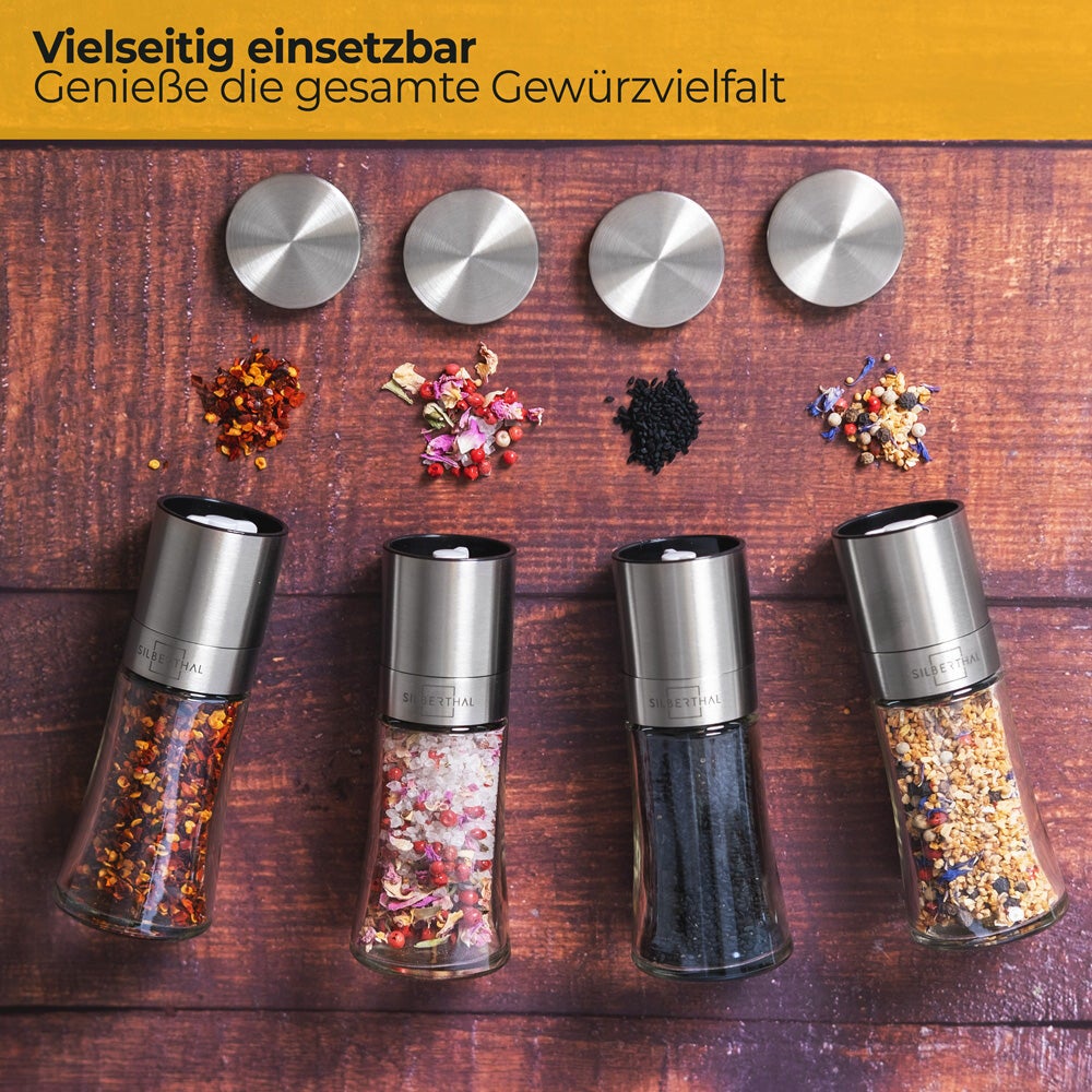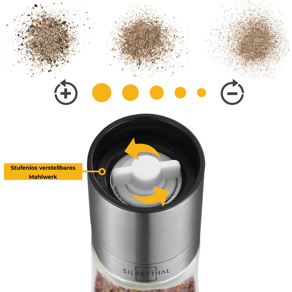Met hun moderne en elegante design passen de SILBERTHAL zout- en pepermolens in elke keuken en aan tafel. De molens zijn eenvoudig in gebruik en gemakkelijk te vullen, waardoor ze ideaal zijn voor dagelijks gebruik. Het doorzichtige venster laat u zien wanneer het tijd is om de molens bij te vullen.