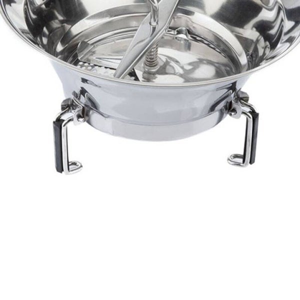 De groentemolen is uitgerust met drie opvouwbare poten, waardoor hij eenvoudig te gebruiken en op te bergen is. De ergonomische zwarte handgreep en knop zorgen voor een comfortabele grip, zelfs bij het verwerken van grotere hoeveelheden. Met de drie verwisselbare filters kunt u de textuur van uw purées en sauzen gemakkelijk aanpassen naar wens.
