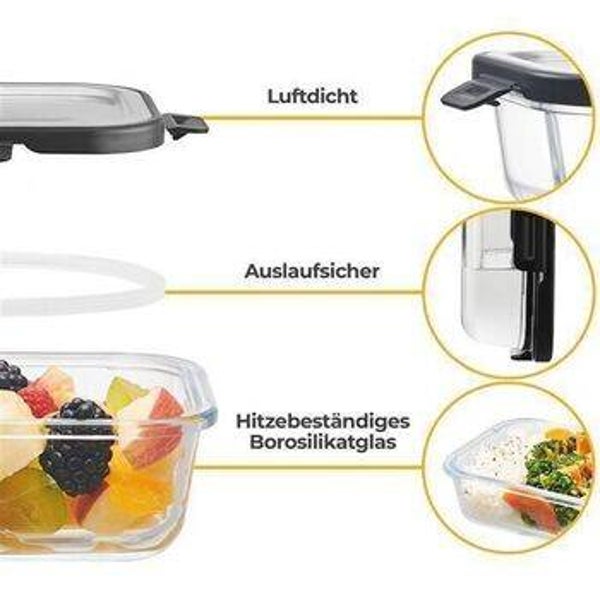 Onderweg en Ondersteunend: De set bevat drie glazen voedselopslagcontainers met verschillende formaten (370 ml, 640 ml, 1040 ml) voor al je opbergbehoeften. Perfect voor het bewaren van diverse voedingsmiddelen, of het nu in de koelkast, vriezer of magnetron is. Vergeet niet het roestvrijstalen deksel te verwijderen voor gebruik in de magnetron! Deze lunchbox is ook ideaal voor onderweg: neem je maaltijd mee naar kantoor, op een picknick of zelfs op campingavonturen.